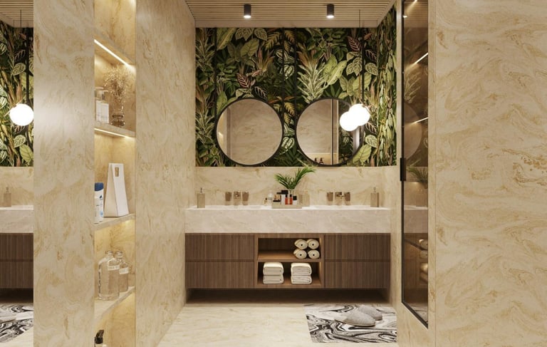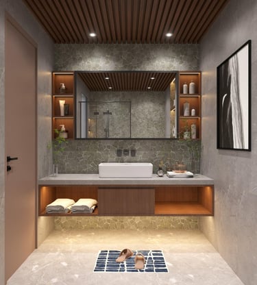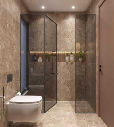 Modern bathroom interiors designed for comfort, style, and functionality. We provide premium fittings, smart layouts, elegant tiles, and quality finishing to create beautiful and practical bathroom spaces.