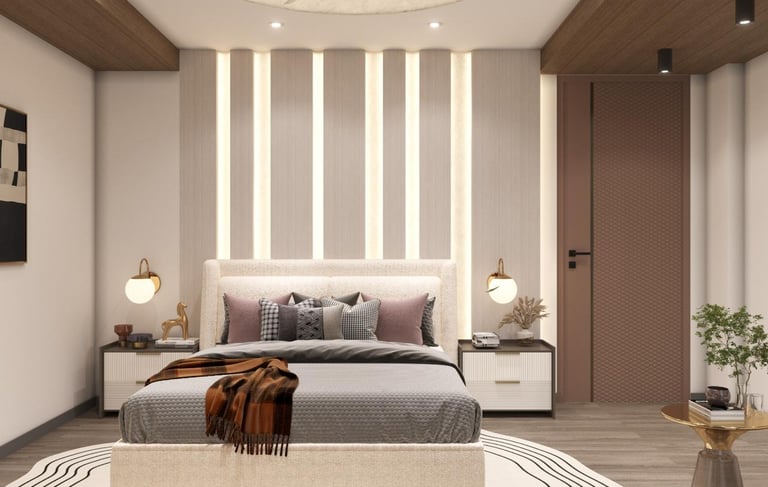 Stylish bedroom interiors designed for comfort and relaxation. We create smart layouts, modern wardrobes, elegant lighting, and premium finishes to give your bedroom a perfect blend of beauty and functionality. 🛏️✨